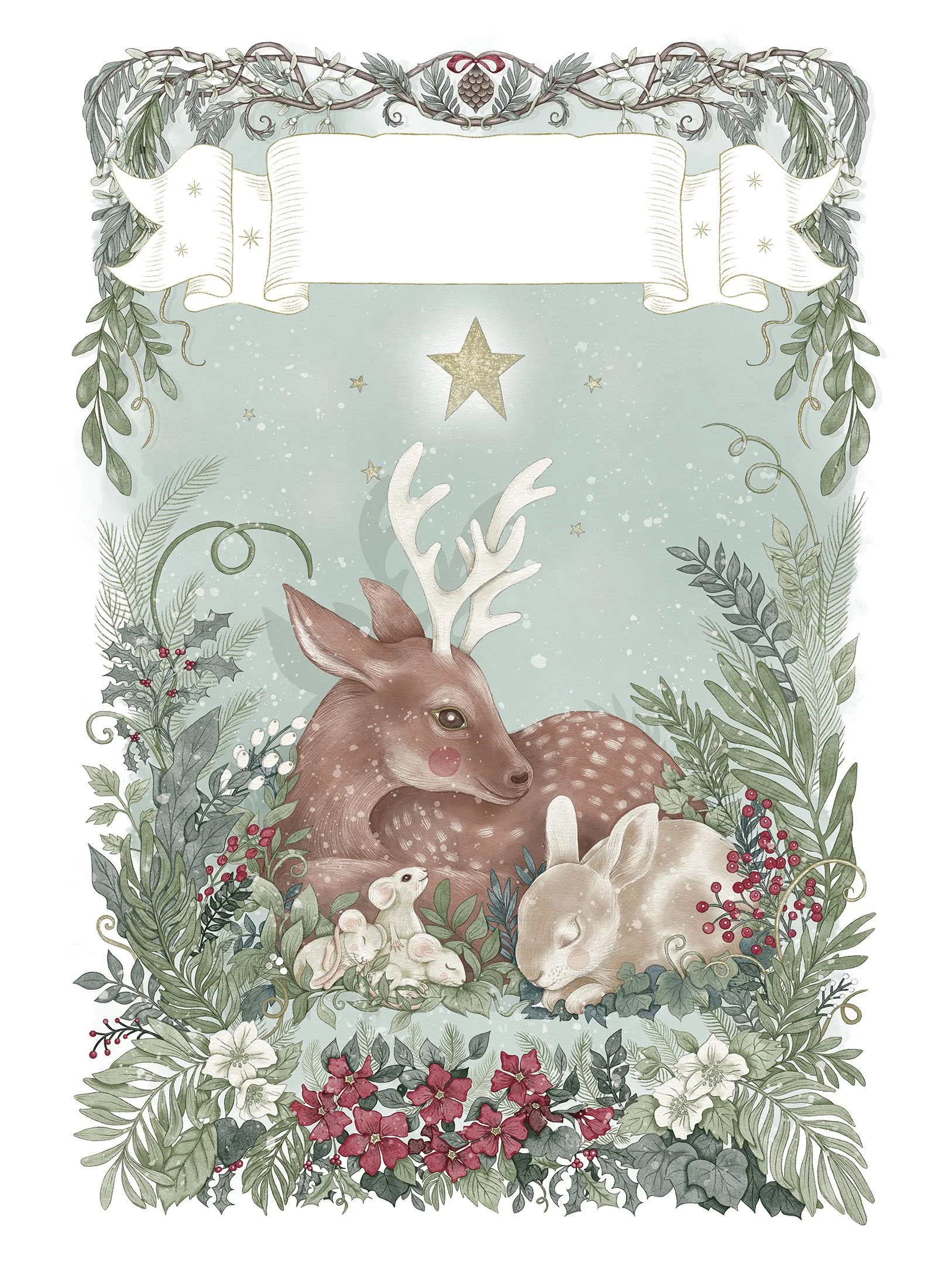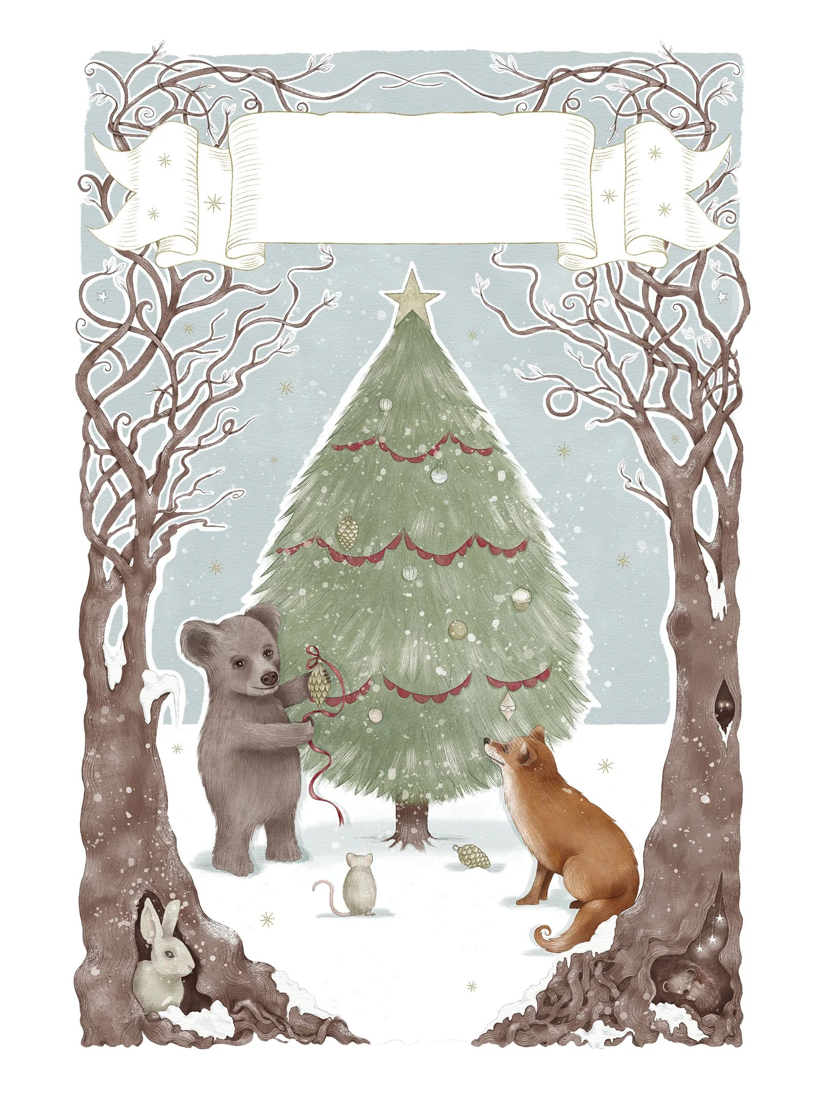 Festive Forest Tales is my new illustrated Christmas collection featuring the wonderful animals who reside in the magical Singing Fern Forest. Owls, mice, foxes, bears... all celebrating the festive season together.