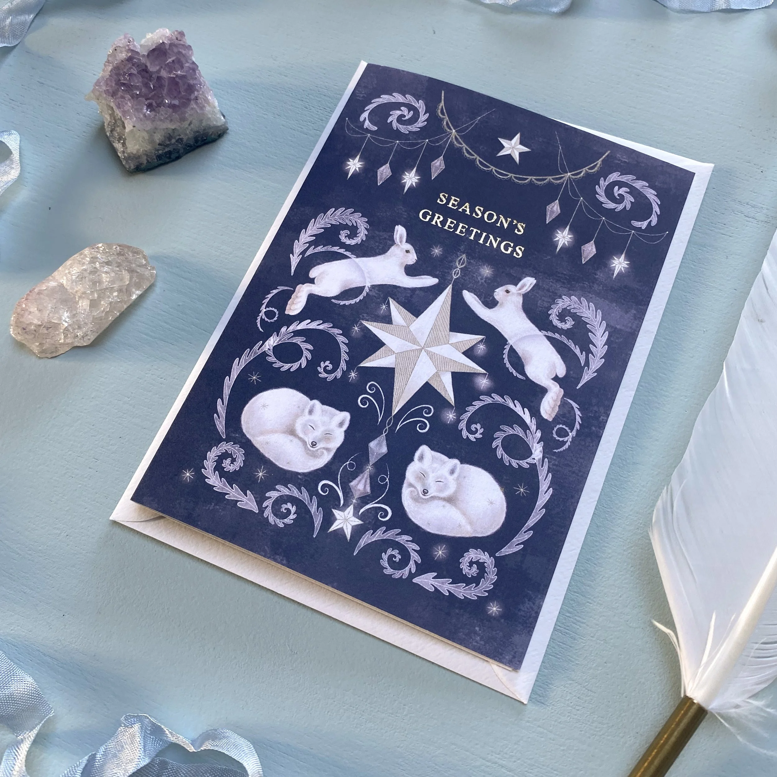 Beautifully illustrated foiled Arctic Animals Christmas Card.